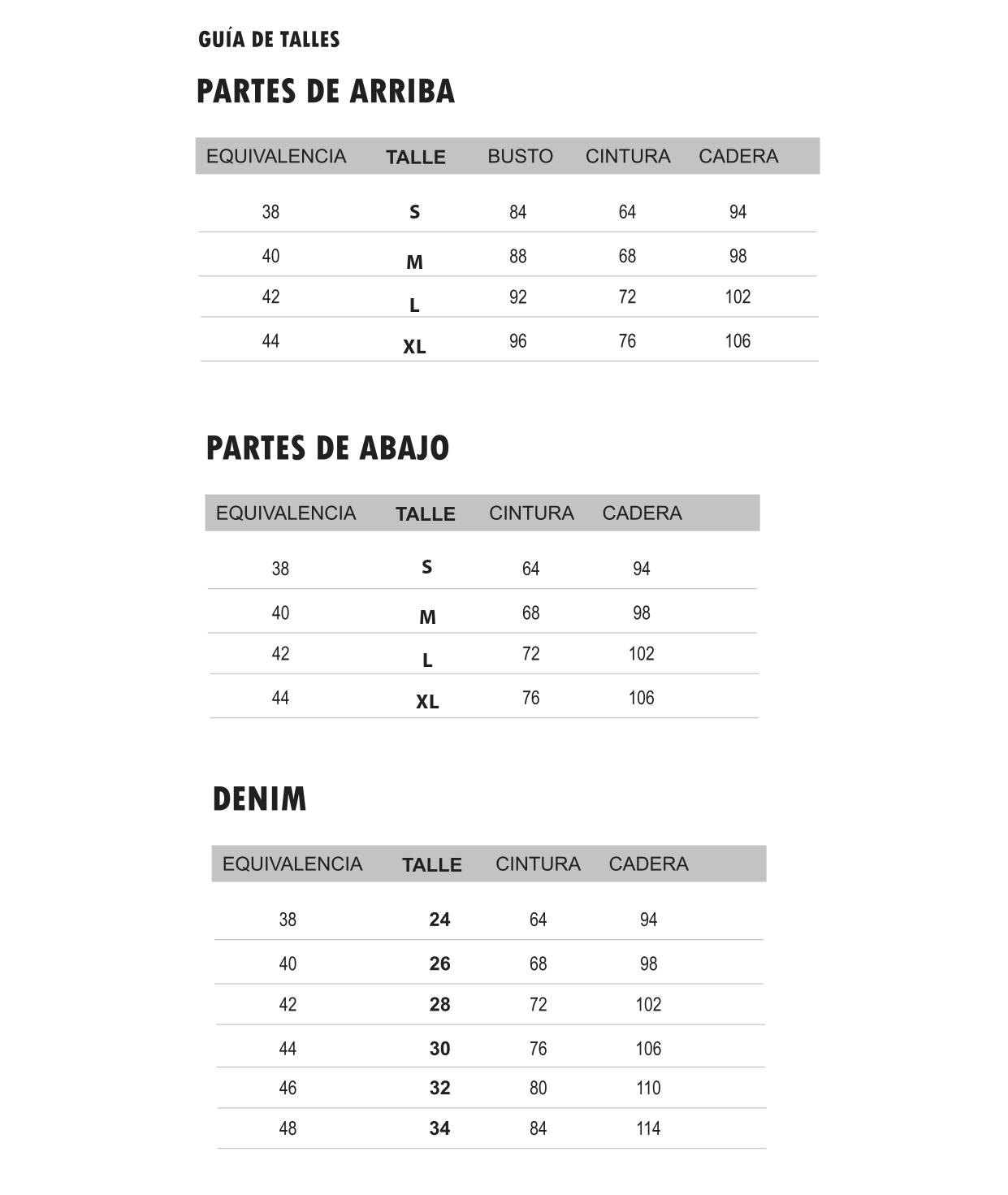Guía de talles